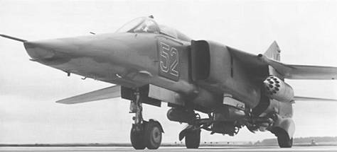 Следует сказать, что МиГ-23 – любимое детище П.С. Кутахова, прославленного ге- эоя Великой Отечественной войны, назначенного в 1969 г. Главкомом ВВС, с самого начала рассматривался как многоцелевой самолет. Успешному решению ударных задач должна была способствовать, в частности, новейшая автоматизированная бортовая аппаратура. Она частично разгружала петчика, избавив его от ряда рутинных задач, связанных с навигацией и пилотированием, и разрешая сосредоточиться на главном – поиске и поражении объекта атаки.