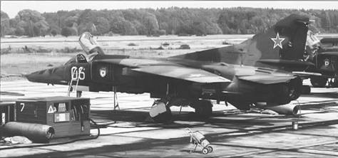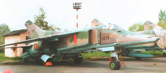 Серийный МиГ-23БМ с четырьмя подвешенными блоками НАР УБ-16