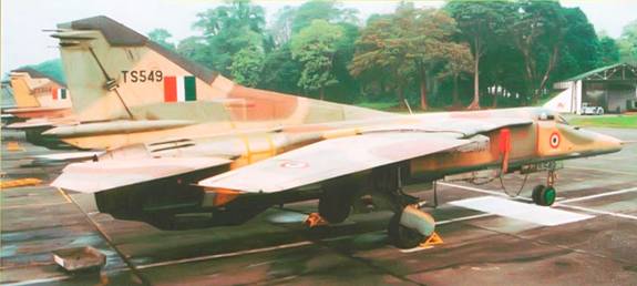 МиГ-23БН из состава ВВС Индии. На самолете подвешены 18 бомб ОФАБ-100-120