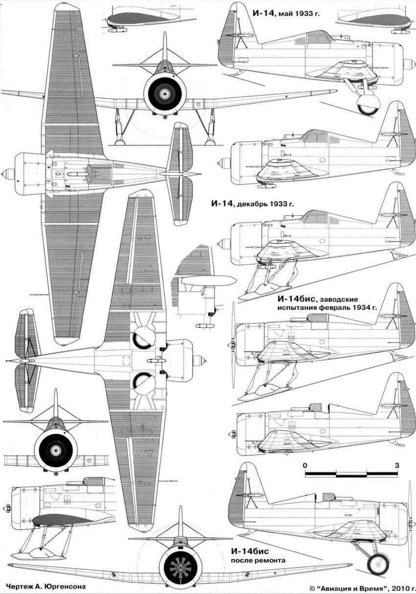 К эскизному проектированию И-14 приступили в начале 1932 г . значительно раньше, чем УВВС сформировало окончательные требования к машине. К маю уже подготовили аэродинамический расчет и эскизный проект под двигатель М-38 (существовавший тогда всего в двух опытных экземплярах). На новом истребителе предусматривались: уборка шасси, тормоза на колесах, масляно-пневматическая амортизация стоек шасси и, наконец, закрытая отапливаемая кабина летчика (следует отметить, что отопление на отечественных истребителях фактически появилось лишь после окончания Второй мировой войны».