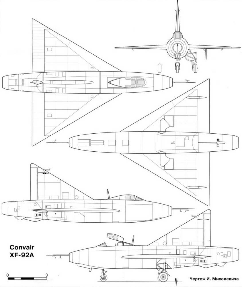 22 мая 1946 г. «Конвэр» признали победителем конкурса, и через месяц с ней был подписан контракт на реализацию программы по созданию самолета. Она состояла из двух этапов. Первый включал проектирование истребителя и постройку модели для продувок, а второй – строительство двух опытных образцов: одного для летных испытаний, второго – для статических. Перехватчик получил военный шифр ХР-92 (в 1948 г. измененный на XF-92) и серийный № 46-682.