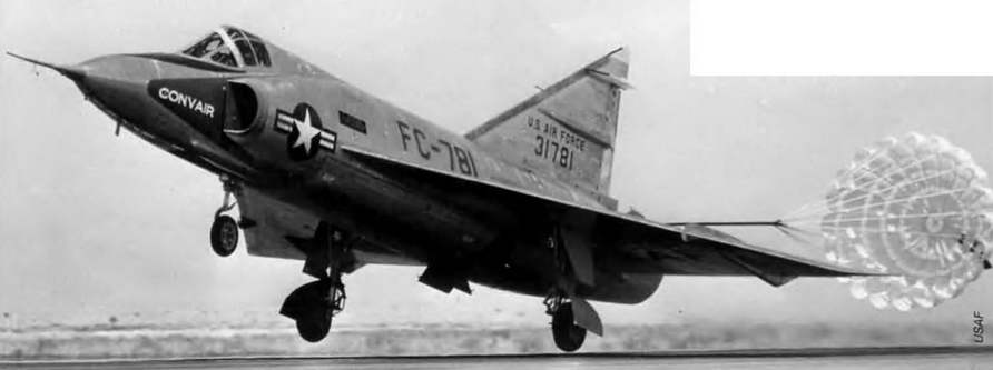 Один из восьми самолетов YF-102 («Модель 8-82») завершает очередной испытательный полет