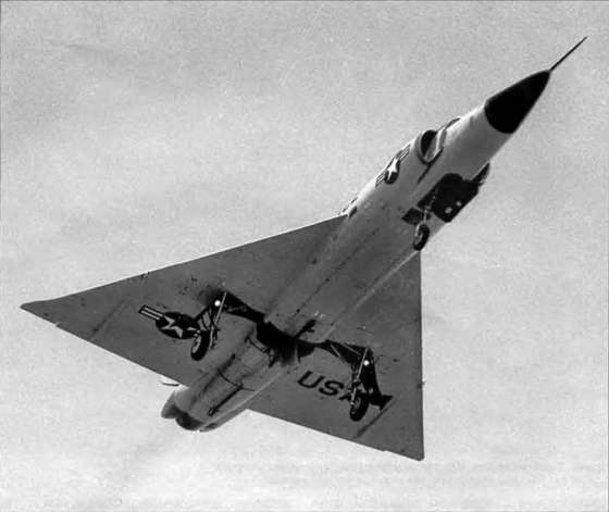 F-102A ранних серий. Хорошо видно, что законцовки крыла не имеют крутки