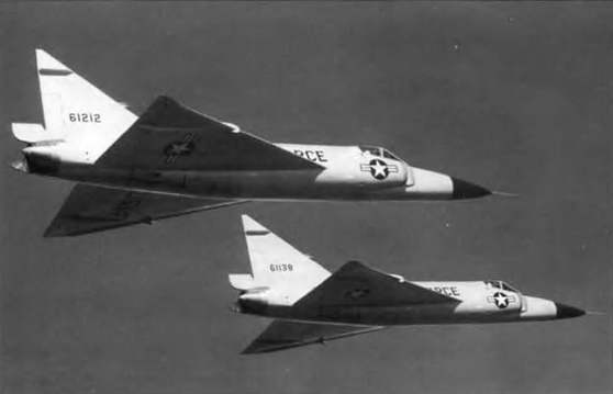 Хорошо видно, насколько отличались YF-102 (слева) и YF-102А