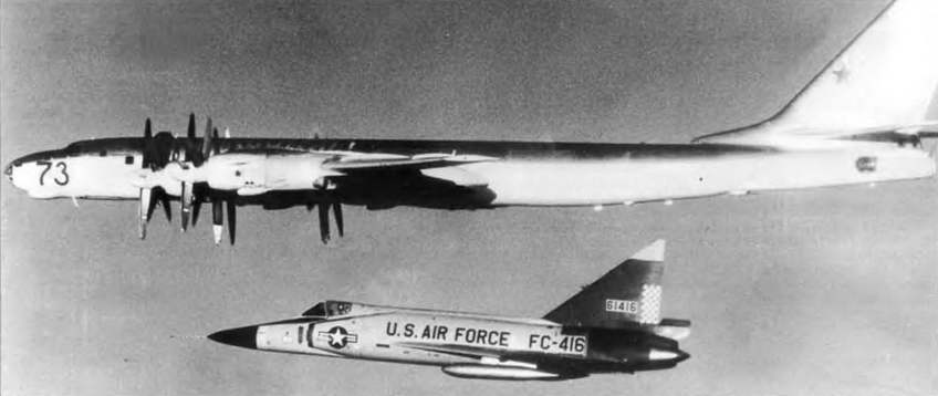 В США по новой концепции выстроили секретную программу MX-1554, которая предусматривала создание к 1954 г. сверхзвукового перехватчика с управляемым ракетным вооружением и электронной системой управления им. Другие названия проекта – interceptor 1954 (перехватчик 1954 – неофициальное), а также Dragonfly (стрекоза). Основные требования программы были таковы: истребитель должен развивать сверхзвуковую скорость, иметь практический потолок более 15000 м, его предусматривалось оснастить исключительно ракетным вооружением и мощной системой управления им. И главное – он должен был обладать способностью перехватывать все типы межконтинентальных бомбардировщиков СССР. Расчет шел на перспективные самолеты, которые, по мнению американских аналитиков, могли появиться на вооружении Советского Союза в ближайшие 10-15 лет. И такие машины могли бы появиться, «не перейди им дорогу» межконтинентальные баллистические ракеты и «ракетомания» Н.С. Хрущева Реально же «сто вторым» пришлось противостоять дозвуковым «Бизонам» (М-4 и ЗМ) и «Медведям» Ту-95. При этом скоростные характеристики истребителя оказались не столь важными, сколько дальность и продолжительность полета.