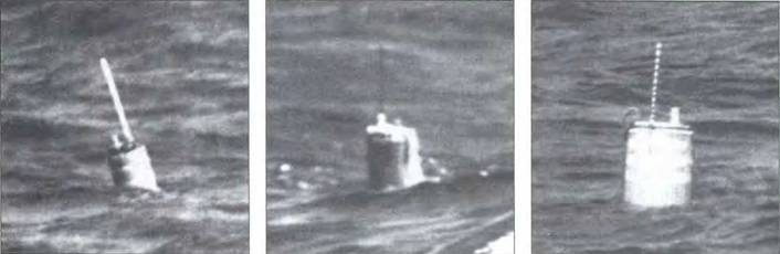 Для начального поиска в наибольшей степени подходят буи РГБ-75. После приводнения они работают непрерывно до 5 ч. Маяков-ответчиков эти буи не имеют, и выход на них производится с помощью автоматического радиокомпаса АРК-А81. Дальность обнаружения малошумных подводных целей колеблется от 1 км при малой скорости хода до 15-20 км, если лодка движется со скоростью 12 узлов.