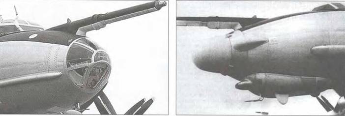 Сверху гермокабины и по бортам на рабочих местах борттехника и обоих операторов расположены аварийные люки. Остекление фонарей штурмана и летчиков выполнено из органического стекла, лобовые стекла: одно штурмана и два летчиков – из триплекса с электрообогревом. Форточки на рабочих местах летчиков сдвижные. В носовой части самолета установлена штанга системы дозаправки топливом в полете.