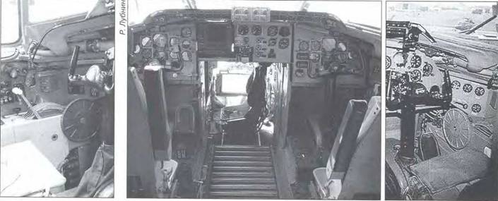 Система управления.Самолет управляется с помощью двух штурвальных колонок и двух пар педалей, соединенных с органами управления тягами. Для облегчения пилотирования во всех трех каналах управления установлены необратимые однокамерные гидроусилители ГУ-54А. а для имитации усилий на колонках управления и педалях применены пружинные загружатели и механизмы триммерного эффекта. В системы управления рулями и элеронами с помощью тросовых проводок подключены рулевые машины автопилота АП-15РЗ. Необходимые характеристики устойчивости и управляемости обеспечивает комплекс автоматов КА-142. исполнительные механизмы которого, рулевые агрегаты РАУ-107А представляют собой раздвижные тяги в системах управления рулями и элеронами.