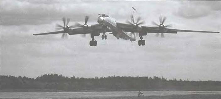 Очевидно, осознав, что другого пути нет, министр в ответном письме от 6 октября 1970 г. согласился с доводами Генерального конструктора и дал сзоим подчиненным команду снять требование базирования Ту-142 на грунтовых аэродромах. Это была большая политическая победа разработчиков самолета, позволившая, в конечном счете, создать достаточно эффективный боевой комплекс. Уже в ноябре к председателю ВПК обратились главком ВВС П.С. Кута- хов и министр авиапромышленности П.В. Дементьев с предложением установить на Ту-142 более легкое шасси и винты АВ- 60К с лучшим КПД на крейсерских режимах полета. Видя, что проект заходит в тупик, Л.В. Смирнов также дал «добро» на эти изменения. И вновь для авиастроителей началась горячая пора. Правда, работа пошла в обратном порядке: трехосные тележки шасси заменили на двухосные, гондолы для их уборки вновь сделали, как на Ту-95РЦ, еще раз переделали закрылки. Кроме того, с самолета сняли аппаратуру «Гагара», которая к тому времени показала свою неспособность обнаруживать подлодку по повышению температуры кильватерного следа, станцию помех «Резеда» и аппаратуру «Квадрат-2». Все это позволило уменьшить массу пустого самолета на 3685 кг.