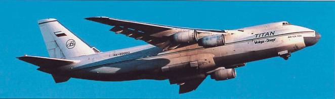 В 1990 г. на мировом рынке появился второй перевозчик, эксплуатирующий «Русланы» – акционерная авиакомпания «Волга-Днепр», созданная на базе ульяновского комплекса «Авиастар». На этот раз «Хэви Лифт» не упустила свой шанс, и в 1991 г. создала с новой авиакомпанией совместное предприятие. За 10 лет«Волга-Днепр» прошла большой и, в общем, сходный с «Авиалиниями Антонова» путь. Ей принадлежит честь выполнения многих уникальных транспортных операций. Так, в 1990 г. из Форли (Италия) в Триполи (Ливия) она перебросила сразу 60000 живых кур. В мае 1992 г. из ОАЭ в Швейцарию перевезла 52 т золота стоимостью 230 млн. фунтов стерлингов. Из Конго в Ригу доставила целый ботанический сад. В 1995 г. самолеты «Волги-Днепр» летали из Рио- де-Жанейро в Сингапур с грузом оборудования для нефтедобывающей промышленности, затем – с электроникой в бразильский город Манаус. В 1997 г. они перевозили автомобили, участвовавшие в марафоне «Мастер- ралли'97" – за рейс до 54 легковых машин. Один из Ан-124-100 компании принял участие в съемках киноэпопеи «Звездные войны», перевезя из Лондона в Тозу (Тунис) съемочное оборудование и макет космического корабля общей массой более 100 т. В том же году для компании «Алмазы России- Саха» в Полярный доставлены 3 сверхтяжелых (по 103 т) грузовика «Комацу- 510Е» из Чикаго. В ходе одного из обратных рейсов из японского города Кансай в Торонто (Канада) перевезен фюзеляж первого экземпляра делового самолета Global Express. Под Рождество 1998 г. из Канады в Нью-Йорк доставили огромную ель массой 40 т. Есть в активе «Волги-Днепр» и транспортировки американских спутников на Байконур, истребителей Су-27 во Вьетнам и Китай, а Су-30 – в Индию. Накопив большой опыт работы на мировом рынке, «Волга-Днепр» разорвала альянс с «Хэви Лифт» и в настоящее время выступает самостоятельно, располагая уже 10 «Русланами».