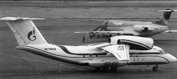 Постройкой первого прототипа занималось опытное производство КМЗ в сотрудничестве с соседним Киевским авиационным производственным объединением (КиАПО)(4*), где предполагалось развернуть серийный выпуск Ан-72. В кооперации участвовали и многие другие предприятия. В то время Запорожское ПО «Моторостроитель» (ныне – ОАО «Мотор Сич») только осваивало серийное производство Д-36 и могло выпускать лишь его отдельные агрегаты. Сборку двигателей и поставку их на КМЗ должен был осуществить «Прогресс», причем специалистам ЗМКБ предстояло создать специальную модификацию Д-36, ибо уже существовавшая и прошедшая все испытания версия предназначалась для Як-42, имела соответствующую «обвязку» и не годилась для установки сверху крыла. Учитывая загрузку своей фирмы, В.А. Лотарев и его первый заместитель Ф.М. Муравченко без особого энтузиазма отнеслись к новой работе. Договариваться с ними поехал главный антоновский двигателист B.Г. Анисенко, который успешно справился с «дипломатической» миссией, и модифицированные Д-36 прибыли в Киев к установленному сроку.