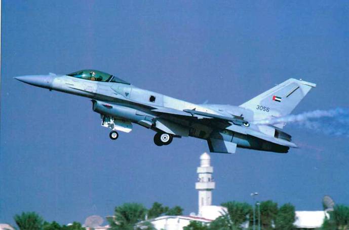 Показ военной техники традиционно занимает важное место в программе авиасалонов в Дубай. На фото: многофункциональные истребители МиГ-29СМТ, представленный РСК «МиГ», и F-16Е Fighting Falcon из состава ВВС Объединенных Арабских Эмиратов