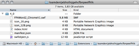 Содержимое архива с игрой. Ролик Flash целиком сохраняется на компьютере