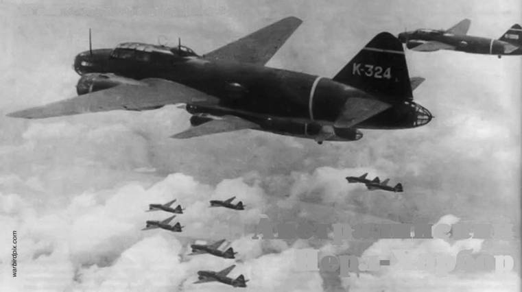 Палубные бомбардировщики Накадзима B5N2 в ходе боевого вылета
