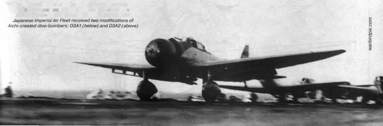 Японский императорский флот получил две модификации пикирующего бомбардировщика фирмы «Аичи»: D3A1 (внизу) и D3A2 (на заставке)