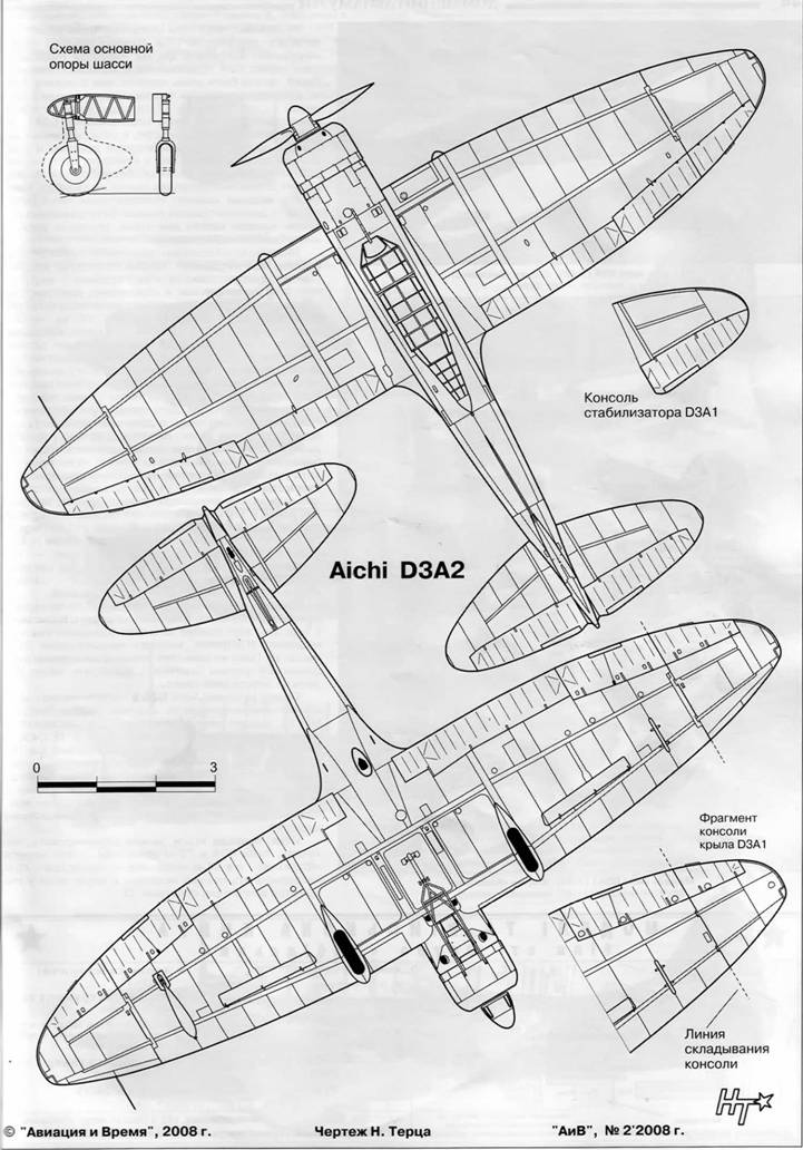 История знаменитого японского пикировщика Aichi D3A Туре 99, получившего во время войны у американцев кодовое наименование Val, берет свое начало в 1936 г. Тогда были выпущены требования 11-Си на самолет, призванный заменить устаревший к тому времени палубный бомбардировщик-биплан Aichi D1A2. При проектировании новой машины специалисты фирмы Aichi ориентировались на конструкцию скоростного немецкого самолета Не 70. Именно у него были позаимствованы крыло и хвостовое оперение эллиптической формы, правда, от другого новшества – убираемого шасси – японцы отказались, сочтя его усложнением конструкции, не дающим особых выгод. С другого немецкого самолета – Ju 87 – была взята конструкция тормозных щитков