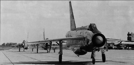 29 октября 1959 г. состоялся первый полет серийного «Лайтнинга» F.Mk 1 (ХМ 134), выпущенного на авиазаводе EEC в Семлс- бери. По сути, самолет был идентичен опытным Р.1 В со всеми их недостатками. Каждый последующий F.Mk 1 ввиду массы текущих доработок и «сырой» технологии сборки являлся индивидуальным продуктом со своими специфичными особенностями. Кроме того, при существовавшем запасе топлива самолет годился разве что для защиты пространства вокруг аэродрома. Посему срочным образом пришлось разрабатывать съемную штангу для дозаправки истребителя в воздухе. Ее внедрили, начиная со следующей серийной версии F.Mk 1А. На варианте «А» вместо бортовой КВ-радиостанции использовали УКВ. Внешним отличием этой модификации от предыдущих стали обтекатели жгутов электропроводки, расположенные снизу вдоль фюзеляжа. Всего до 28 июля 1961 г. выпустили 19 F.Mk 1 и 28 F.Mk 1А.