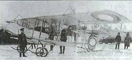 Летчики 16-го КАО у самолета "Фарман-\Л1П . Довоенное фото Самолет "Дюпердюссен" на полевом аэродроме. Завод Лебедева выпустил о 1914-1915 гг. 63 самолета такого типа, которые стали поступать в авиаотряды с первых месяцев войны Взлет "Ньюпора-IV" на лыжном шасси На полевом аэродроме 21-го корпусного авиаотряда. На переднем плане – разводчик "Фарман-XVI". Зима 1914-15 гг.