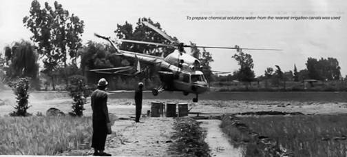 Ничуть не легче пришлось техникам. Они первыми прибывали к вертолету и покидали площадки только после выполнения всех необходимых процедур, связанных с подготовкой машины к завтрашнему дню. Регламентные работы, устранение дефектов, замену агрегатов выполняли «всем миром», т.е. всем свободным на тот момент техническим составом. Отдельной бригады для проведения периодического регламента не было, а квалификация и опыт каждого авиатехника позволяли выполнять эти работы в полевых условиях. Кроме того, техник постоянно присутствовал на площадке во время полетов. Он следил за загрузкой, одновременно контролировал опасные зоны, между делом протирал остекление, осматривал общее состояние вертолета, сельхозаппаратуры, производил заправку топливом и т.д. И все это при 30-градусной жаре, в пыли и песке, скользя по жидкой грязи от пролитой вокруг воды. Но хуже всего было целый день находиться в окружении в общем-то доброжелательной, но чересчур назойливой публики, при всяком удобном поводе старавшейся продемонстрировать свои познания в английском и спросить твое имя, поинтересоваться, как ты себя чувствуешь, узнать, который час… Ни жара, ни пыль и песок не утомляли так, как маниакальное стремление местных пообщаться и поглазеть на белого человека, а иногда и прихватить, разумеется, в качестве сувенира оставшиеся без присмотра отвертку или пассатижи. Со временем местное население привыкло к нашему присутствию, и проблема то ли сгладилась, то ли на нее перестали обращать внимание.