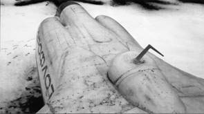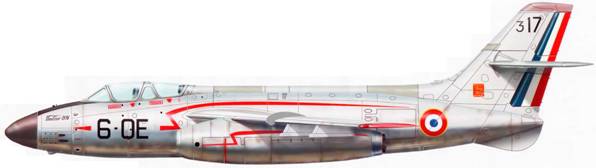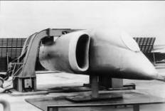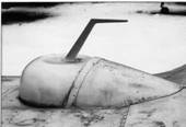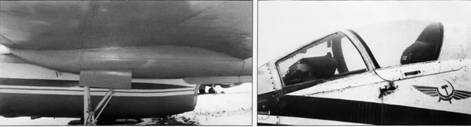 На этом месте на третьем летном экземпляре находилась пушечная установка, которую после «демобилизации» самолета заменили обтекателем и УКВ-антенной