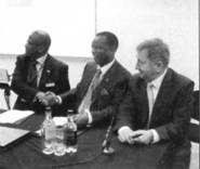На фото слева направо: Президент компании Denel Aviation Майк Кгобе, Президент компании Pamodzi Investment Holdings Ндаба Нтселе и Генеральный конструктор Д.С. Кива.
