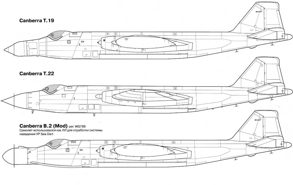 Третий опытный экземпляр (VN828), имевший уже обозначение B.Mkl, был построен по образцу первой машины, но имел вертикальное оперение без форки- ля, доработанный руль поворота и носовую часть, подготовленную для установки радара. Самолет собрали на серийном заводе в Сэймлсбьюри, и 22 ноября Бимонт перегнал его в Вартон. Следующие 10 лет машина не только участвовала в доводочных испытаниях, но и использовалась в интересах RRE в качестве летающей лаборатории. Это была первая «Канберра», достигшая высоты 15200 м. Впоследствии самолет переделали в прототип модификации Т. 11 для тренировки пилотов перехватчиков «Джавелин». В декабре 1961 г. его носовую часть перенесли на борт WJ643, который еще долго использовало летное подразделение фирмы Ferranti Flying Unit в испытательных целях.