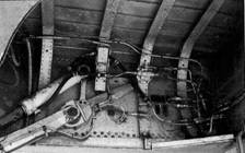 Гидравлическая система служит для уборки и выпуска шасси, посадочных щитков и воздушных тормозов, открытия – закрытия створок бомболюка, работы тормозов основных колес. Диапазон рабочего давления в гидросистеме – 140-176 кг/см г . Работу системы обеспечивают два гидронасоса с приводом от двигателей. Имеются также два гидроаккумулятора. В качестве аварийного источника давления в гидросистеме используется ручная помпа, которая предназначена в полете исключительно для закрытия створок бомболюка и выпуска шасси. На земле она может использоваться как источник давления при проверках гидросистемы.