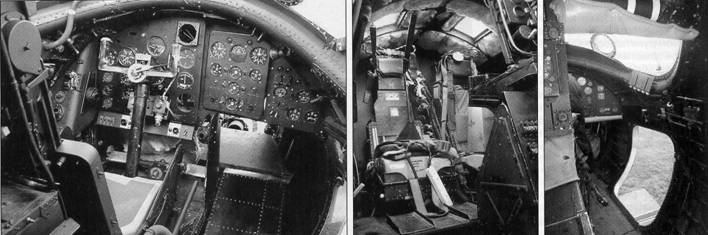 Кабина В.2: рабочее место летчика; катапультные кресла штурмана и бомбардира; открытая входная дверь и лаз на рабочее место бомбардира, которое он должен покинуть в аварийной ситуации и занять катапультное кресло