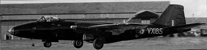 Как бы там ни было, но две следующие и последние опытные машины (№№ VX165 и VX169) были построены уже по спецификации В5/47, т.е. трехместными, с прозрачной носовой частью и оптическими бомбардировочными прицелами Т2, а также с более мощными двигателями «Эйвон» 101 (серия RA3) тягой по 2950 кгс. Первые полеты фактически предсерийных образцов состоялись 23 апреля и 2 августа 1950 г. соответственно.