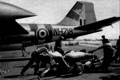Не заставил себя долго ждать и первый серийный бомбардировщик (№ WD929), взлетевший с аэродрома в Сэймлсбьюри 8 октября 1950 г. Уже весной следующего года начались поставки нового самолета в войска. 25 мая «Канберра» В.2 (WD936) была торжественно передана 101-й эскадрилье, дислоцированной в Бинбруке (графство Линкольншир), до той поры эксплуатировавшей бомбардировщики Авро «Линкольн». Самолет с завода перегнал лично Бимонт, который перед посадкой эффектно продемонстрировал маневренные возможности новой машины. Пятиминутный «сольный номер» вызвал у всех присутствовавших бурю восторга. После посадки шеф-пилот провел прямо на аэродромной траве вводный инструктаж об особенностях новой техники.