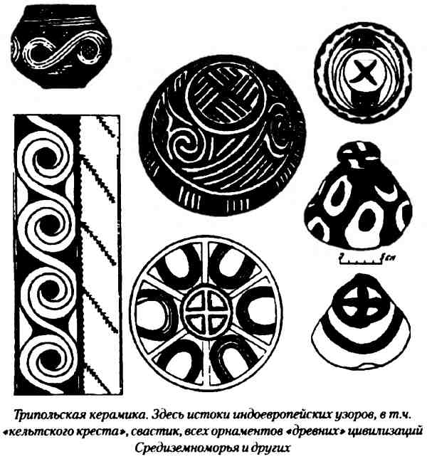 Для VIII–V тысячелетий до н. э. все земледельческо-скотоводческие «археологические культуры» Греции, Южной Италии, Сицилии, Балкан и Северного Причерноморья принадлежат племенам-родам суперэтноса русов. Причём автохтонных русов-бореалов, перешедших на индоевропейскую стадию после вливания в их общности русов-индоевропейцев Малой Азии и Ближнего Востока в целом. Было бы чрезвычайно странным, если бы каждый род русов, занимающий определённые земли, не имел бы своих отличительных узоров в общетрадиционном орнаменте русов. Безусловно, внешние отличия и в формах горшков, и украшений были. Единым оставалось главное — язык, общие предки, общие традиции.