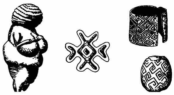 В Винче большим разнообразием отличалась керамическая посуда: горшки всех форм, кувшины, кубки, прототипы «древнегреческих» амфор, лицевые сосуды… Декор тоже был разнообразным. Интересно то, что, с одной стороны, использовался точечный ленточный рисунок, связующий Винчу с «линейно-ленточными культурами» Северной и Восточной Европы, а с другой — волнисто-спиральный ближневосточного типа. Но особенно хороши были узоры крестово-свастичные, типичные для практически всех родов русов. Именно они доказывают единство большой многотысячелетней «культуры» — точно такие же узоры мы видели в Мезине и других городищах XX–XV тысячелетий до н. э., в поселениях Анатолии и т. д.
