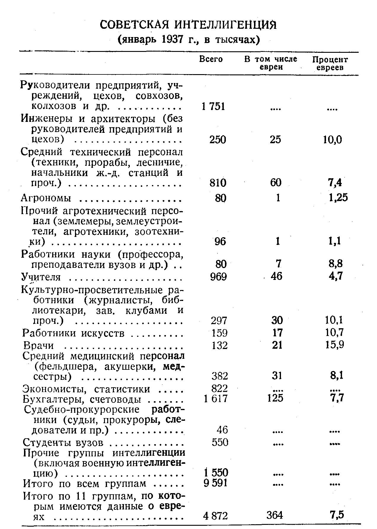 Во второй половине тридцатых годов начался, однако, новый подъем кривой антисемитизма, пробуждение нового антисемитизма, нового по той социальной среде, в которой он возник, нового и по своим формам. Это был ползучий, сначала, может быть, только полуосознанный антисемитизм верхнего слоя советской бюрократии, избегавший открытых проявлений и выражавшийся в основном в оттеснении евреев на задний план во всех сферах советской жизни. «Большая чистка» 1936/38 годов, сопровождавшаяся обострением борьбы против интернационалистских элементов в компартии и резко сказавшаяся в уничтожении большинства сколько-нибудь выдвинувшихся евреев-коммунистов, чрезвычайно благоприятствовала развитию этого нового антисемитизма. На пороге сороковых годов он получил широкое распространение в Советском Союзе.