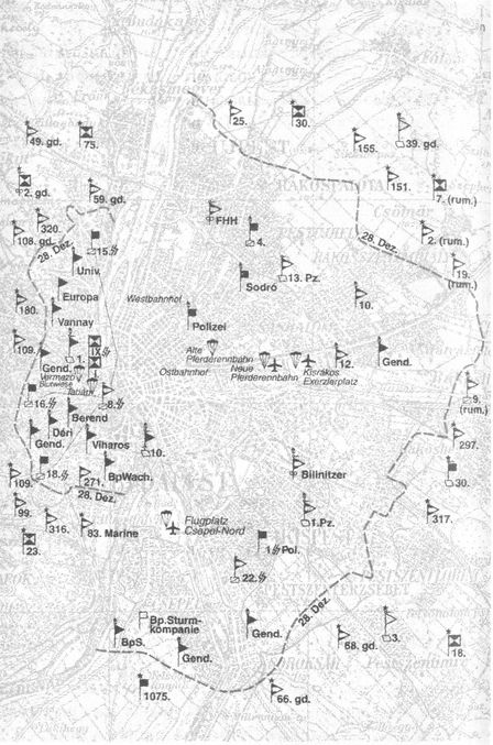 Согласно дневнику боевых действий 10-й венгерской дивизии, 25 октября оборону Будапешта должны были осуществлять следующие силы: