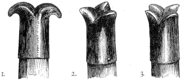 В таком случае шлем провинившегося скидывается с ограды на землю, и судьи, как это показано на рис. 8, касаются его жезлами (прим. ред.).