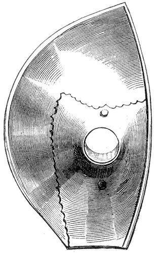 Скорее всего через эти отверстия пропускались шнуры для крепления подшлемника, т. к. шнуры быстро бы перетирались, если бы отверстия не были снабжены медными гильзами (прим. ред.).