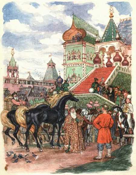 Пётр Павлович Ершов (1815—1869) родился в Сибири.В детстве он слушал сказки сибирских крестьян, многие запомнил на всю жизнь и сам хорошо их рассказывал.Ершов очень полюбил народные сказки. В них народ остроумно высмеивал своих врагов – царя, бояр, купцов, попов, осуждал зло и стоял за правду, справедливость, добро.Ершов учился в Петербургском университете, когда он впервые прочитал замечательные сказки Пушкина. Они тогда только что появились.И он тут же задумал написать своего «Конька-горбунка» – весёлую сказку о смелом Иванушке – крестьянском сыне, о глупом царе и о волшебном коньке-горбунке. Многое взял Ершов для «Конька-горбунка» из старинных народных сказок.Сказка была напечатана в 1834 году. А. С. Пушкин прочитал и с большой похвалой отозвался о «Коньке-горбунке».Окончив университет, Ершов вернулся из Петербурга в Сибирь, на свою родину, и там прожил всю жизнь. Много лет он был учителем гимназии городаТобольска. Ершов горячо любил свой суровый край, изучал его и хорошо знал.Кроме «Конька-горбунка», он написал ещё несколько произведений, но они сейчас уже забыты. А «Конек-горбунок», появившись больше ста лет назад, по-прежнему остается одной из любимых сказок нашего народа.