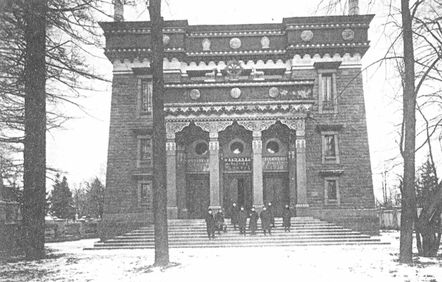 [42]. Именно на последних намекал корреспондент «Виленского вестника», писавший в середине 1909 — вскоре после начала строительных работ в Старой деревне: «Сооружаемый буддийский храм, кроме целей чисто религиозного культа, преследует, между прочим, и цели создания специального центра, вокруг которого смогут группироваться все интересующиеся буддизмом в Петербурге»