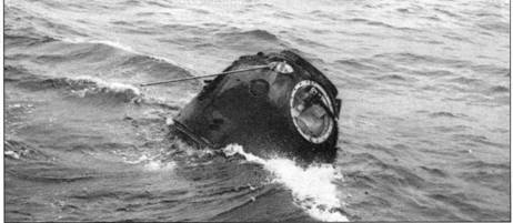 По цепочке вдоль этой трассы в Индийском океане заранее были расставлены корабли и суда советского ВМФ, оснащенные необходимыми средствами поиска и подъема СА Вот что рассказывает об операции по спасению «Зонда-5» ее участник киевлянин В.П.Черненко: «Наше судно «Василий Голо- внин» находилось в дежурном режиме в точке с координатами 26° ю.ш., 74°59' в.д., когда поступила информация, что «Зонд» будет приводняться. Назвали примерный район посадки и расчетное время – через 6-8 часов. «Головнин» немедленно направился в указанный район, однако погода стала ухудшаться, и вскоре разыгрался настоящий ураган. Темп нашего продвижения замедлился, реальной стала угроза опоздания к моменту приводнения, и наш командир сообщил об этом на космодром. В ответ оттуда пришло указание: следите за вспышками в небе прямо по курсу, «Зонд» идет на вас. Все свободные от вахты моряки, несмотря на шторм и наступление ночи, высыпали на палубу, чтобы своими глазами увидеть возвращение на Землю ее посланца, облетевшего Луну. Вскоре мы заметили яркую вспышку на высоте нескольких километров – это пиропатрон выбросил вытяжной парашют. Вторую вспышку, когда сработали двигатели мягкой посадки, увидеть не удалось из-за волн. Практически сразу после приводнения на «Зонде» включился радиомаяк. Однако из-за того, что спускаемый аппарат все время то поднимался на гребень волны, то проваливался вниз, его сигнал был прерывистым и пеленговался с большим трудом.