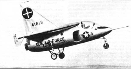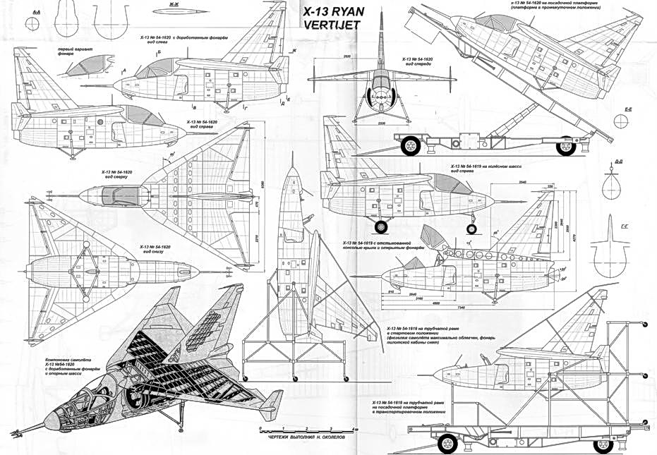 Получалось, что лучшие конструкторы компании проработали семь лет впустую! Смириться с этим Клод Райен не захотел и продолжил борьбу за проект, предложив его вечным конкурентам флота – Военно-воз- душным силам. Представители главного штаба ВВС согласились финансировать программу, о чем официально уведомили компанию в августе 1953 г. В соответствии с контрактом Af33(600)-25895, предстояло построить два экспериментальных самолета, именуемых моделью «69» и получивших военное обозначение Х-13 Vertijet. Ключом к успеху должен был стать английский двигатель Avon фирмы Rolls-Royse, который считался тогда одним из лучших в мире и применялся на большинстве британских самолетов. Удельная масса выбранной американцами модификации RA 28 составляла всего 0,28 кг/кгс, а максимальная тяга достигала 4540 кгс.