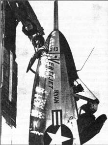 Имя Клода Райена, владельца компании Ryan Aeronautical, приобрело мировую известность еще в 1927 г., благодаря самолету NYP «Spirit of St. Louis», на котором Чарльз Линд- берг перелетел Атлантический океан. Другой известной машиной его компании стал палубный истребитель FR-1 Fireball, который, кроме поршневого двигателя, был оснащен вспомогательным турбореактивным. В ноябре 1945 г. серийный FR-1 из эскадрильи VF-66 вошел в историю морской авиации как первый самолет, совершивший посадку на авианосец с использованием только реактивного двигателя. Истребитель отличался еще и тем, что после выработки некоторого количества топлива суммарная тяга воздушного винта и ТРД превышала его вес. Эта уникальная для того времени особенность позволила инженерам «Райен» предположить, что «Файерболл» способен вертикально висеть в воздухе. До проведения летного эксперимента дело не дошло, но возникшая между специалистами фирмы дискуссия натолкнула ее владельца на мысль о возможности создания реактивного самолета с вертикальным взлетом и посадкой. Особенностью такого летательного аппарата должны были стать минимальные размеры и вес в сочетании с высокой тяговооруженностью.