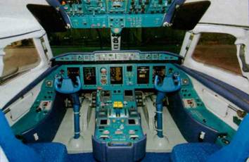 Летчики Ан-148 работают в кабине нового типа, созданной в соответствии с перспективной концепцией «free flight». Вся необходимая информация, как пилотажно-на- вигационного характера, так и описывающая состояние бортовых систем, отображается на пяти экранах размером 6x8 дюймов. Пульт управления электронным курсором CCD позволяет получать на экранах не только эту, но и любую дополнительную информацию. В целом облик пилотской кабины и идеология работы экипажа, состоящего из двух человек, призваны «вписать» самолет во все современные воздушные трассы и все аэроузлы, даже с самым напряженным воздушным движением.