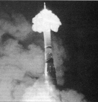 В целом, программа ASAT шла довольно трудно. По техническим причинам, связанным, в первую очередь, с наиболее проблемной третьей ступенью и системой ИК-наведе- ния, ее реализация задержалась на 18 месяцев. 21 января 1984 г. на Тихоокеанском ракетном полигоне состоялся первый из 12 запланированных испытательных пусков ASM-135, в котором ракета несла лишь макет аппарата-перехватчика. Первый реальный перехват космического объекта был выполнен 13 сентября 1985 г., в качестве мишени использовался исследовательский спутник ВВС США Р78-1, находившийся на круговой полярной орбите с наклонением 97,7° и высотой около 450 км. Пуск антиспутника с F-15 был выполнен летчиком в автономном режиме, который рассматривался как штатный в условиях боевого применения. При подходе к зоне пуска самолет летел по командам директорной системы на высоте 11890 м со скоростью, соответствовавшей М=0,85. После входа в пределы 13-километровой зоны с координатами, определенными для пуска, бортовая ЭВМ истребителя выдала команду на снижение до высоты 9140 м, затем рассчитала точку начала маневра, после прохода которой самолет разогнался до числа М=1,22. Затем летчик выполнил «горку» с углом наклона траектории 60-65° при перегрузке 3,5g. Пуск антиспутника был осуществлен на высоте 11580 м при скорости, соответствовавшей М=1,0. Перехватчик поразил цель прямым попаданием.