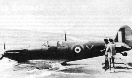 Итальянские офицеры у «Спитфайра», совершившего вынужденную посадку на сицилийском берегу после боя над Мальтой. 1942 г.