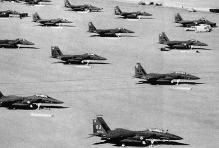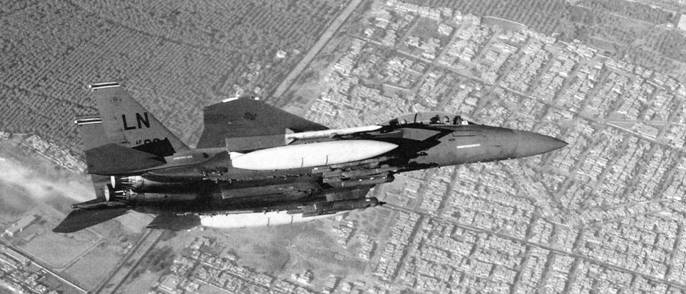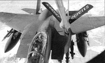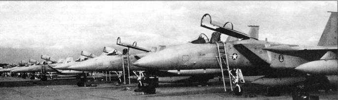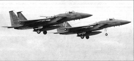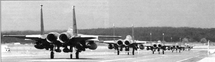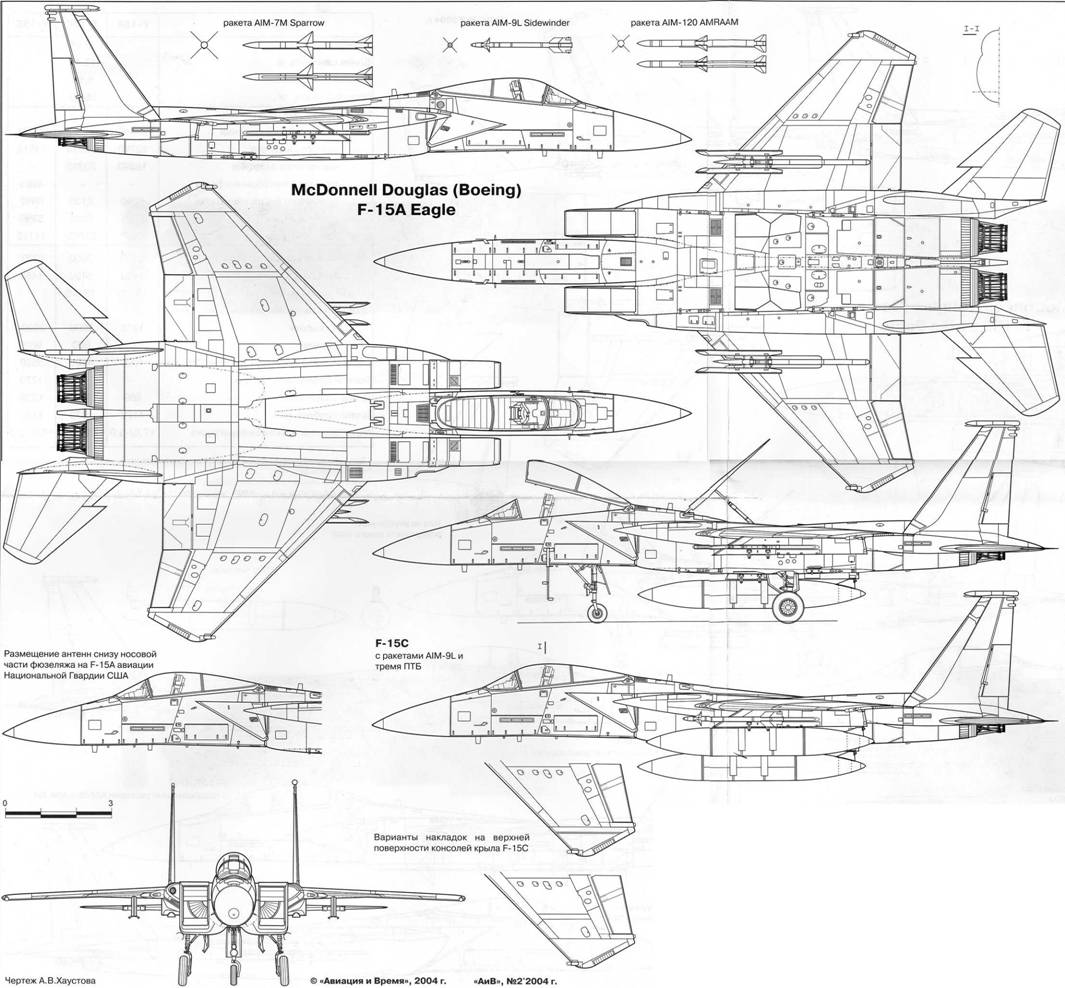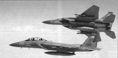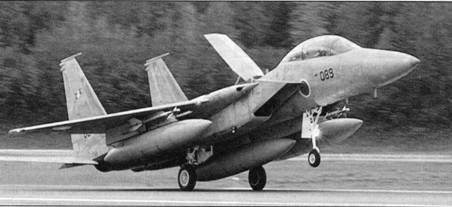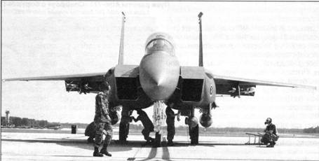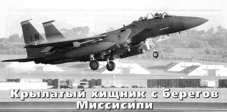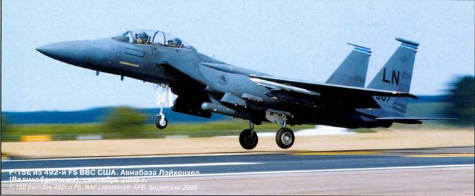 В августе 2003 г. на линейке Международного авиакосмического салона МАКС-2003 в Жуковском, рядом с российскими истребителями, пестро раскрашенными в стиле латиноамериканских карнавалов, стояли аскетичеки выглядевшие темно-серые машины с почти незаметными американскими звездами. Так москвичи и гости российской столицы смогли лично познакомиться с самолетами F-15C и F-15Е «Игл» – одними из основных «рабочих инструментов» ВВС США. Сегодня машинам этого семейства американцы отводят основную роль в борьбе с авиацией противника на театре военных действий, они задействованы в системе ПВО континентальной части США, а ударный F-15E является самым мощным на Западе истребителем-бомбардировщиком.