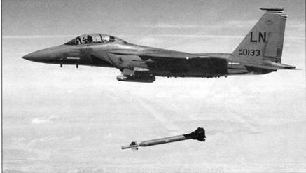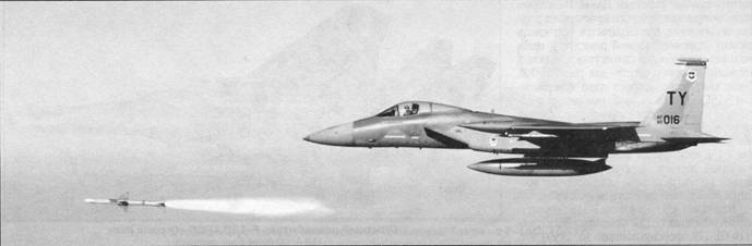 К тому моменту уже были проработаны и согласованы с ВВС основные направления дальнейшего развития самолета. Так, модернизированный вариант F-15C и его двухместный аналог F-15D должны были получить новое вооружение, в первую очередь – ракеты средней дальности AIM-120 AMRAAM с активной радиолокационной головкой самонаведения на конечном участке траектории и инерциальным наведением с радиокоррекцией на маршевом участке. Максимальная дальность стрельбы новыми ракетами должна была составлять 50 км. F-15C/D появился в 1979 г. Он отличался усовершенствованным БРЭО, усиленной конструкцией воздухозаборников и других элементов планера, а также увеличенной емкостью внутренних топливных баков и наличием узлов крепления подвесных несбрасываемых конформных баков. В то же время, работы над AIM-120 затянулись, и F-15C/D начали оснащать новыми ракетами лишь с весны 1991 г. А до этого основу вооружения истребителя составляли модернизированные УР с полуактивной радиолокационной системой самонаведения AIM-7M «Спарроу», способные поражать воздушные цели на дистанции до 45 км.