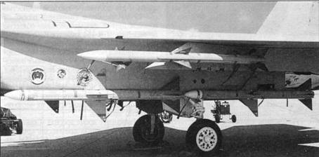 Подфюзеляжный топливный бак и узлы подвески ракет AIM-7M «Спарроу»