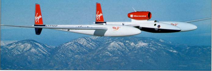 А началась эта история пять лет назад, когда Дик Рутан в разговоре с Фоссетгом упомянул, что его брат желает обсудить несколько идей, которые могли бы заинтересовать известного рекордсмена. Действительно, Бэрт представил Стиву два абсолютно секретных на тот момент проекта: космического суборбитального челнока, а также самолета для кругосветного перелета-соло и предложил принять в них участие, в т.ч. финансовое. Фоссепу, как заядлому «кругосветчику», больше импонировала идея перелета, и 26 декабря 2001 г., после всесторонней ее оценки, он принял решение спонсировать разработку «Глобал Флаера». Однако финансовых возможностей Фоссегга оказалось недостаточно, и в марте 2003 г. во время полета с Брэнсоном на воздушном шаре он рассказал о работе и предложил ему разделить спонсорство. Надо сказать, что Брэнсон является президентом второй по величине британской авиакомпании Virgin Atlantic Airways. С привлечением дополнительных средств работа пошла быстрее. Здесь уместно напомнить, что «Скэйлд Композите» – небольшая частная фирма, и в разработке «Глобал Флаера» участвовало, по заявлению Рутана, кроме него, всего пять инженеров.
