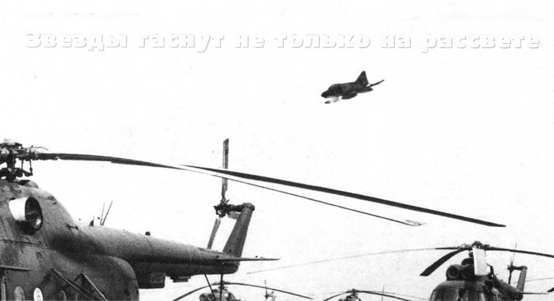 4 апреля вертолеты забрали десант с приличным арсеналом, включавшим даже 120-мм минометы, необходимое снаряжение и перебазировались на полевой аэродром. Этот процесс завершился уже в сумерках, и для обеспечения посадки последних машин на земле пришлось разводить огни. Затем до глубокой ночи проводилась заправка «восьмерок» от Ми-6 и наземных емкостей. Поужинали экипажи наспех сухим пайком и кое- как отдохнули.