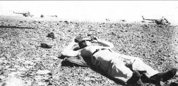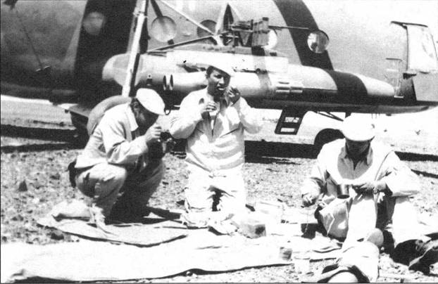 Экипажи обедают в ожидании команды на подбор десанта. Обратите внимание на закрашенную звезду. Иран, 5 апреля 1982 г.